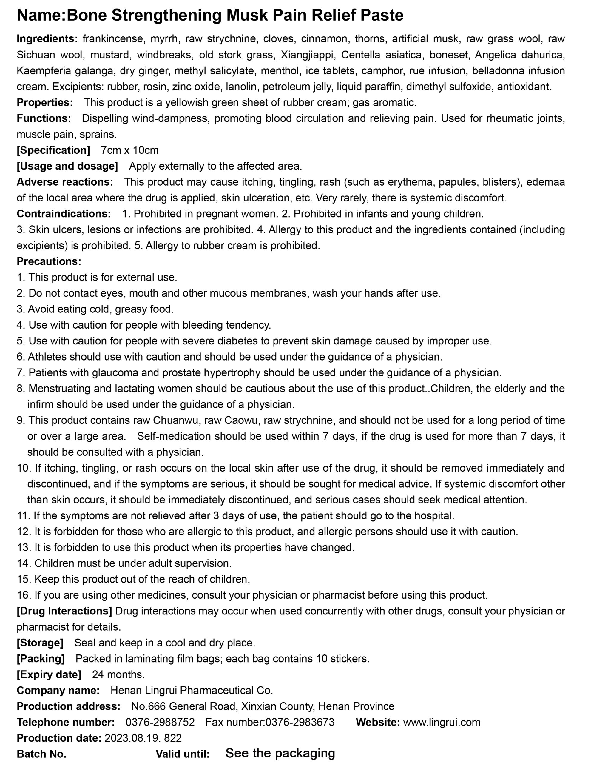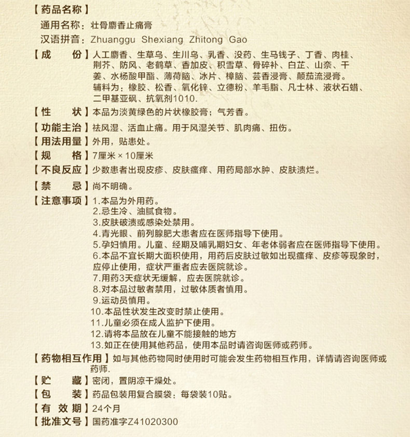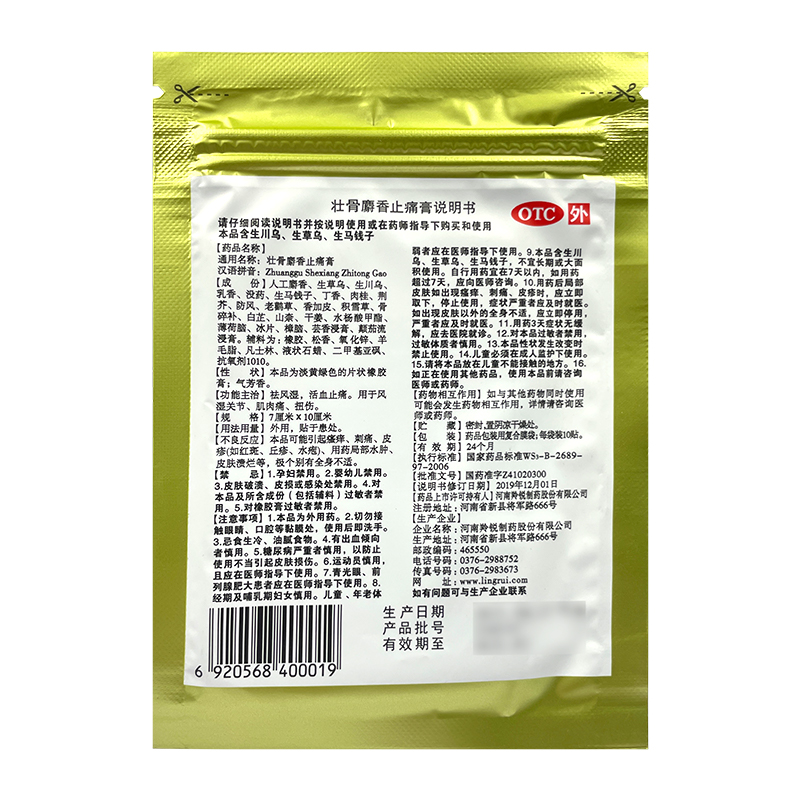Lingrui Musk Pain Relieving Plaster Zhuang gu She xiang Zhi tong Gao 羚锐壮骨麝香止痛膏